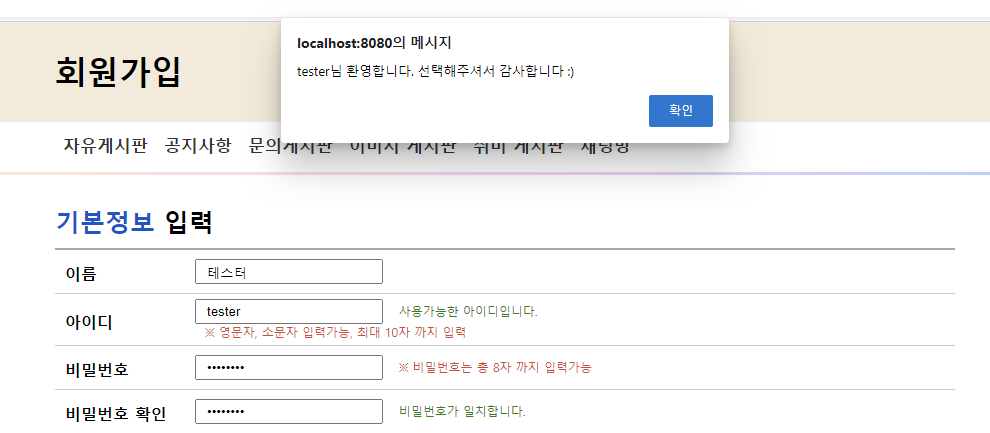 이번에 해본 것은 어느 사이트에 가도 꼭 있는 기능입니다. 바로 회/원/가/입!