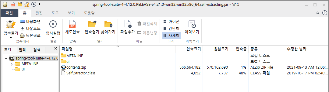 다운로드를 다 받았으면 jar파일 안에 contents.zip이라는 파일이 보이는데 놀랍게도 제가 찾아 헤매던 STS4는 이곳에 있었습니다.